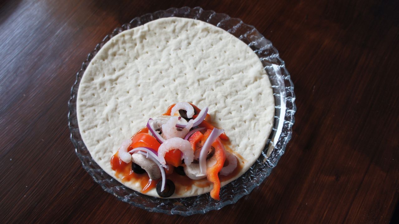 Puista tarjoiluastiaa meiltä ei löytynyt, joten lasinen sai välttää. Puinen kapusta sentään oli. Nokkosen roolia esitti persilja.