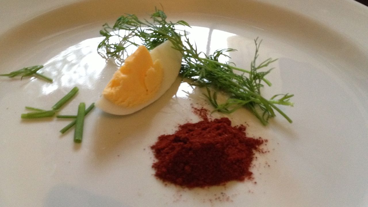 Etiketin mukaan sisältöön pitäisi olla käytetty beste zutaten jopa seit 1722. Purkkia avatessani toivoin, että nämä zutaten olisivat hieman tuoreempaa vuosikertaa. Itse tarjoiluehdotus koostuu (puisesta) kulhollisesta hapankaalia. Koristeena on pari jonkinsortin nokkosta sekä viisi kokonaista mustapippuria. Eines lusikoidaan luonnollisesti puulusikalla.